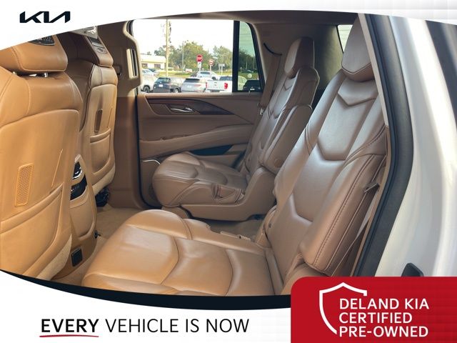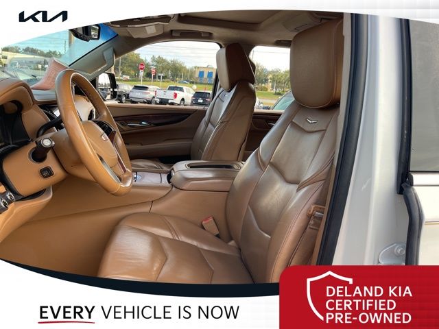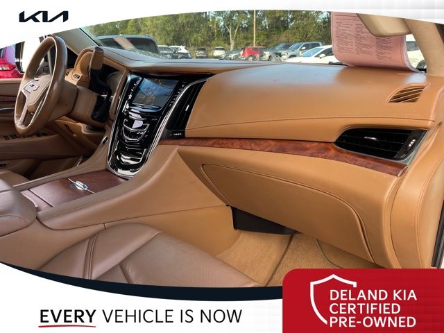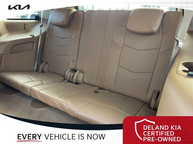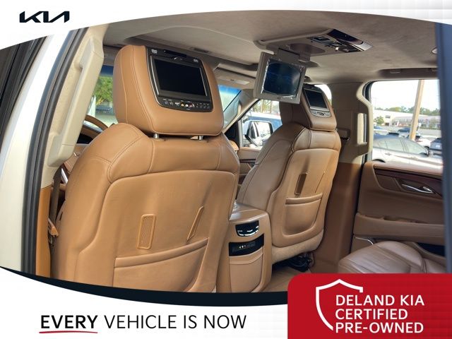 Step inside and be captivated by the Escalade's premium cabin, featuring a Bose Centerpoint Surround Sound System, Cooled Console with Covered Storage, and a Heads-Up Display that puts vital information right in your line of sight. The Navigation System and Rear Seat Entertainment System ensure a seamless driving experience, while the Power Tilt-Sliding Sunroof and Dual DVD Screens add to the luxurious ambiance.