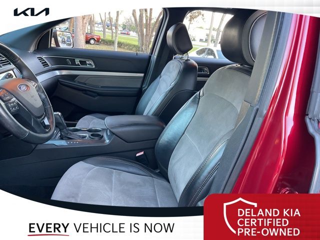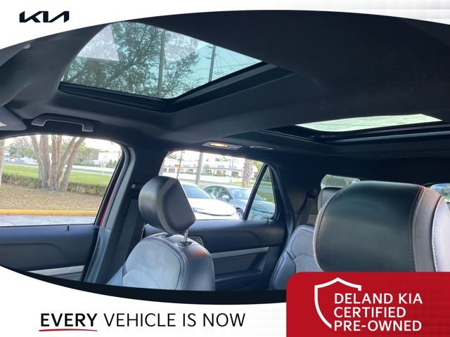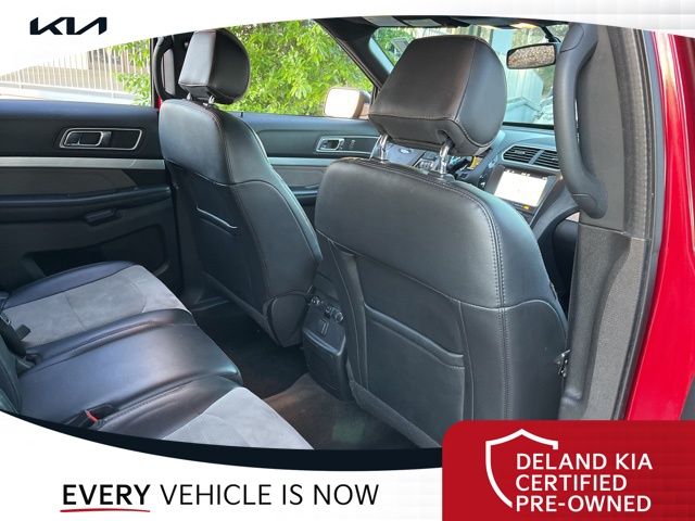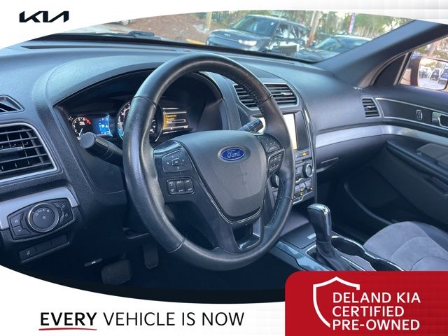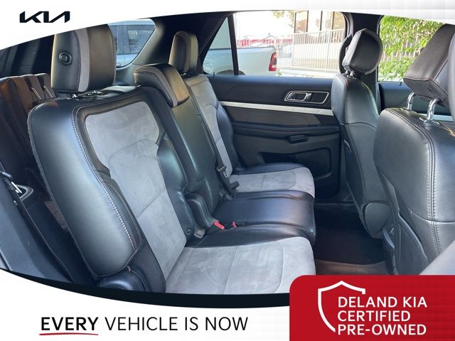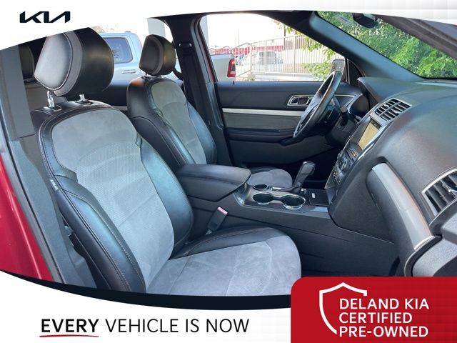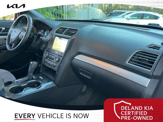 Equipped with Comfort Package (Leather Heated Bucket Seats), Driver Connect Package (2 Driver Configurable 4.2" Color LCD Displays and Auto-Dimming Rear-View Mirror), Equipment Group 202A (Dual-Zone Electronic Automatic Temperature Ctrl, Forward Sensing System, Hands-Free Foot-Activated Liftgate, Heated Steering Wheel, and Remote Start System), XLT Appearance Package (20" Wheels, Black Roof Rack Side Rails, Dark Earth Gray Unique Door-Trim Panel Insert, EXPLORER Badge on Hood, EXPLORER Unique Branded Front Floor Mats, Lower Bodyside Cladding Insert, Lower Door Trim, Lower Front & Rear Bumper Covers, Magnetic Met-Painted Grille Bars w/Mesh Insert, Perforated Leather-Trimmed Bucket Seats, Sideview Mirror Caps, and Wheels: 20" x 8.5" Magnetic Met Painted 10-Spoke), XLT Technology Feature Bundle (Auto-Dimming Driver's Sideview Mirror, BLIS Blind Spot Information System, and Voice-Activated Touchscreen Navigation System), 18" Painted Aluminum Wheels, 3.39 Non-Limited-Slip Axle Ratio, 3rd row seats: split-bench, 4-Wheel Disc Brakes, 6 Speakers, ABS brakes, Air Conditioning, Alloy wheels, AM/FM radio: SiriusXM, Brake assist, Bumpers: body-color, CD player, Compass, Delay-off headlights, Driver door bin, Driver vanity mirror, Dual front impact airbags, Dual front side impact airbags, Electronic Stability Control, Emergency communication system: 911 Assist, Exterior Parking Camera Rear, Four wheel independent suspension, Front anti-roll bar, Front Bucket Seats, Front Center Armrest, Front fog lights, Front reading lights, Fully automatic headlights, Heated door mirrors, Illuminated entry, Knee airbag, Leather steering wheel, Low tire pressure warning, Occupant sensing airbag, Outside temperature display, Overhead airbag, Overhead console, Panic alarm, Passenger door bin, Passenger vanity mirror, Power door mirrors, Power driver seat, Power passenger seat, Power steering, Power windows, Radio: AM/FM Stereo w/Single-CD/MP3 Capable, Rear air conditioning, Rear anti-roll bar, Rear Parking Sensors, Rear reading lights, Rear seat center armrest, Rear window defroster, Rear window wiper, Remote keyless entry, Roof rack: rails only, Security system, Speed control, Speed-sensing steering, Speed-Sensitive Wipers, Split folding rear seat, Spoiler, Steering wheel mounted audio controls, SYNC Communication & Entertainment System, Tachometer, Telescoping steering wheel, Tilt steering wheel, Traction control, Trip computer, Turn signal indicator mirrors, Twin Panel Moonroof, and Variably intermittent wipers.