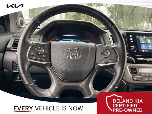 Step inside and be captivated by the Pilot's luxurious interior. The spacious cabin offers seating for up to 8 passengers, ensuring everyone travels in comfort. The leather-trimmed seats, power-adjustable driver's seat, and heated front seats provide unparalleled comfort, while the power moonroof and premium audio system enhance your driving enjoyment.
