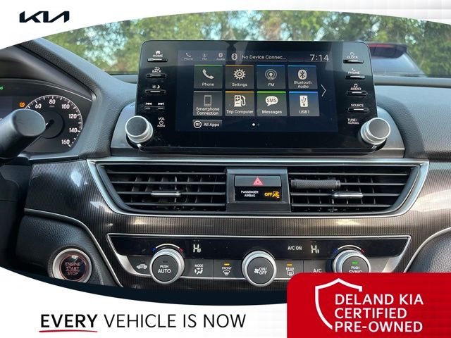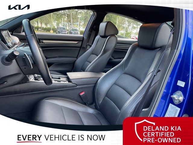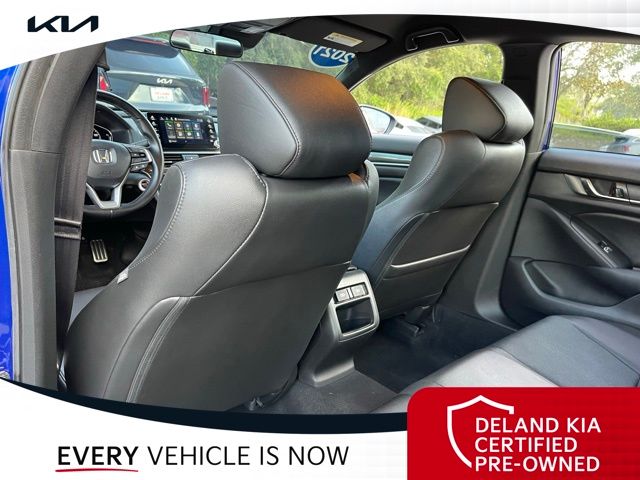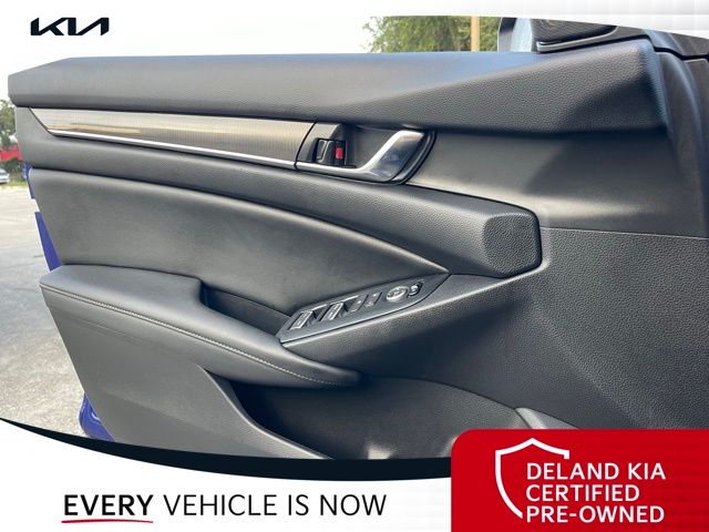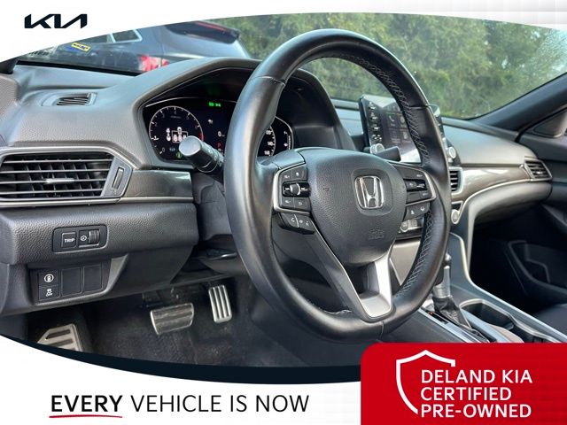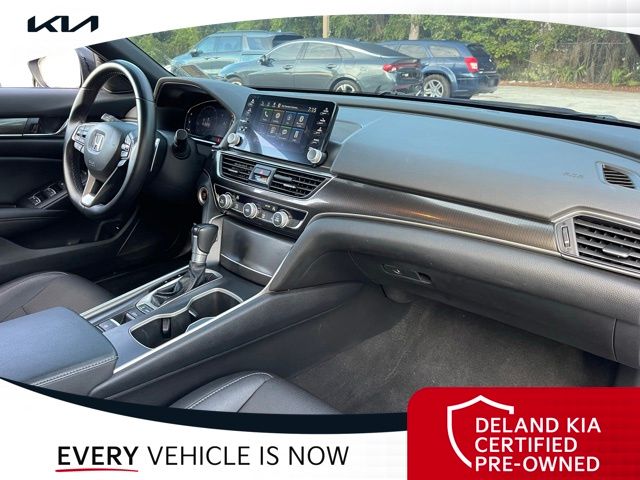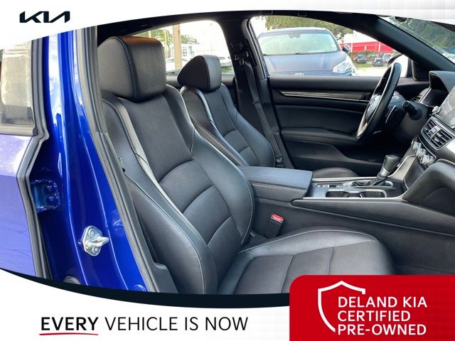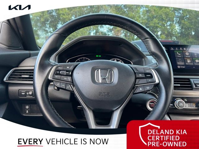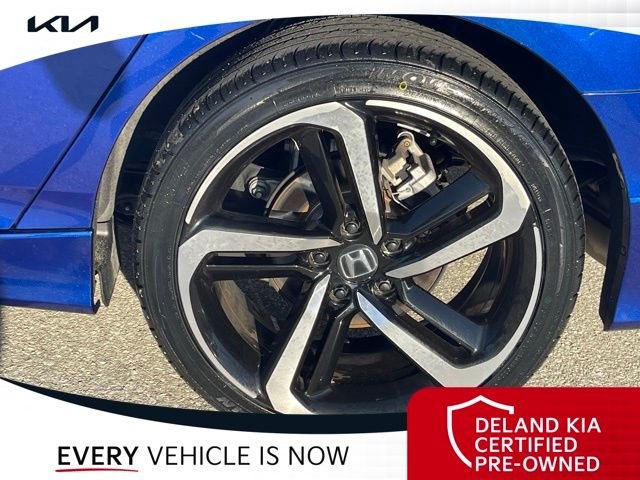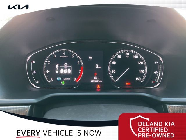 Equipped with Black Cloth/Leather, Alloy wheels, Apple CarPlay/Android Auto, Front dual zone A/C, Lane Departure Warning System, Power driver seat, Steering wheel mounted audio controls, 4-Wheel Disc Brakes, 8 Speakers, ABS brakes, Adaptive Cruise Control: Adaptive Cruise Control (ACC) with Low-Speed Follow, Air Conditioning, AM/FM radio, Auto High-beam Headlights, Automatic temperature control, Brake assist, Bumpers: body-color, Cloth Seat Trim, Delay-off headlights, Driver door bin, Driver vanity mirror, Dual front impact airbags, Dual front side impact airbags, Electronic Stability Control, Emergency communication system: HondaLink, Exterior Parking Camera Rear, Forward collision: Collision Mitigation Braking System (CMBS) + FCW mitigation, Four wheel independent suspension, Front anti-roll bar, Front Bucket Seats, Front Center Armrest, Front fog lights, Front reading lights, Fully automatic headlights, Illuminated entry, Knee airbag, Leather Shift Knob, Leather steering wheel, Low tire pressure warning, Occupant sensing airbag, Outside temperature display, Overhead airbag, Overhead console, Panic alarm, Passenger door bin, Passenger vanity mirror, Power door mirrors, Power steering, Power windows, Radio data system, Radio: 180-Watt AM/FM Audio System, Rear anti-roll bar, Rear seat center armrest, Rear window defroster, Remote keyless entry, Security system, Speed control, Speed-sensing steering, Speed-Sensitive Wipers, Split folding rear seat, Spoiler, Tachometer, Telescoping steering wheel, Tilt steering wheel, Traction control, Trip computer, Variably intermittent wipers, and Wheels: 19" Machine-Finished Alloy w/Black Inserts.
