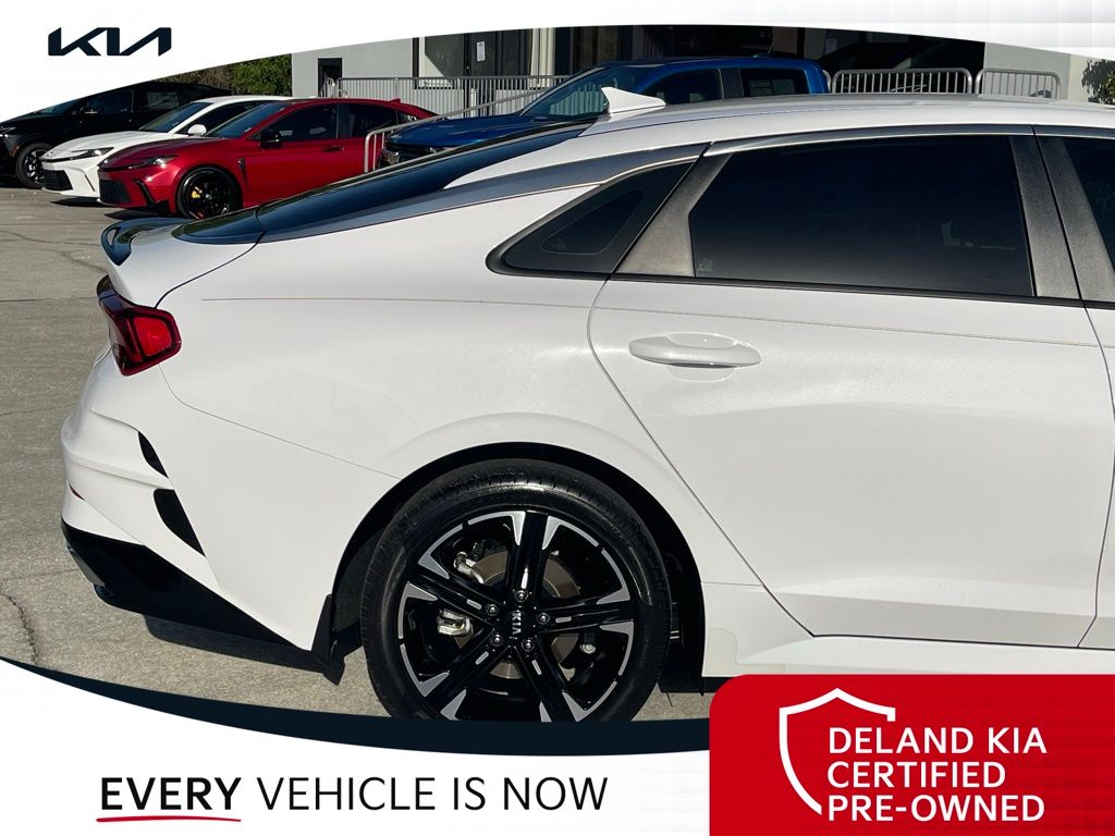 The K5 GT-Line's striking Glacial White Pearl exterior exudes a refined and sophisticated presence, complemented by a host of stylish design elements, including body-color bumpers, heated power mirrors, and a sporty rear spoiler. Step inside the cabin, and you'll be greeted by a spacious and well-appointed interior, featuring premium cloth/leatherette seating, a leather-wrapped steering wheel, and a host of advanced technology features, including a state-of-the-art infotainment system with Apple CarPlay and Android Auto integration.