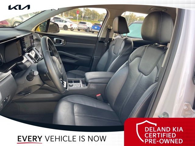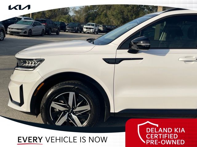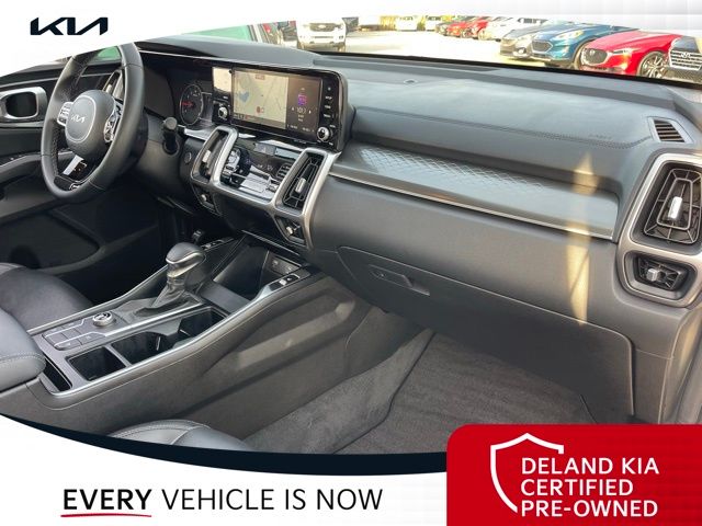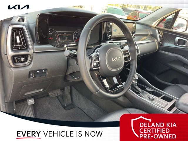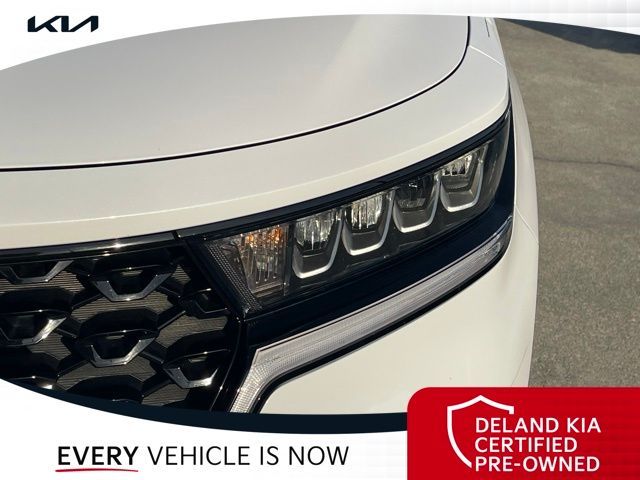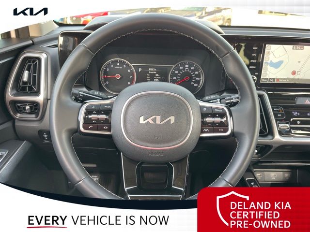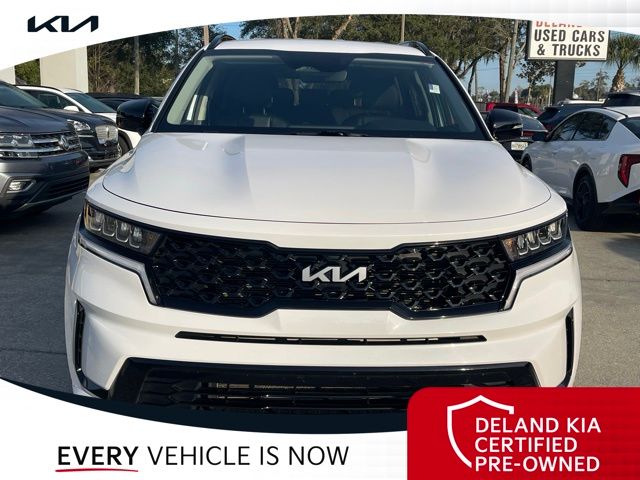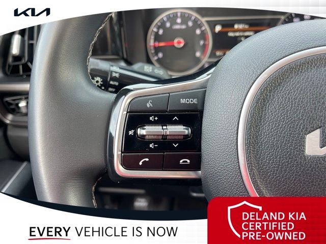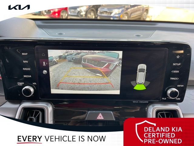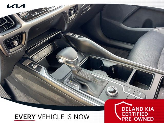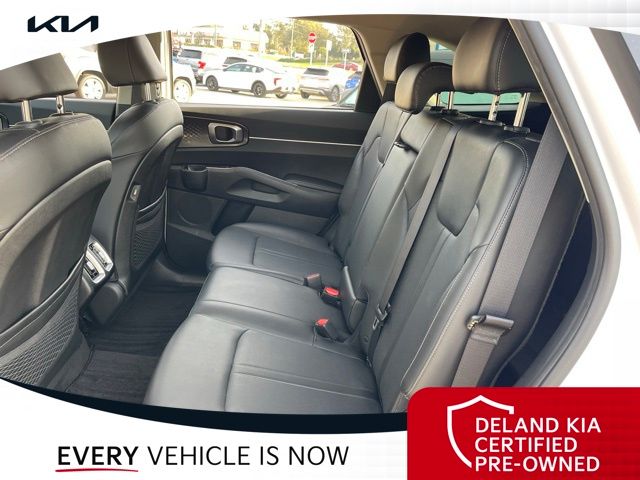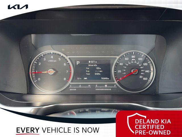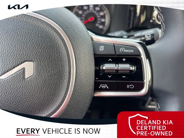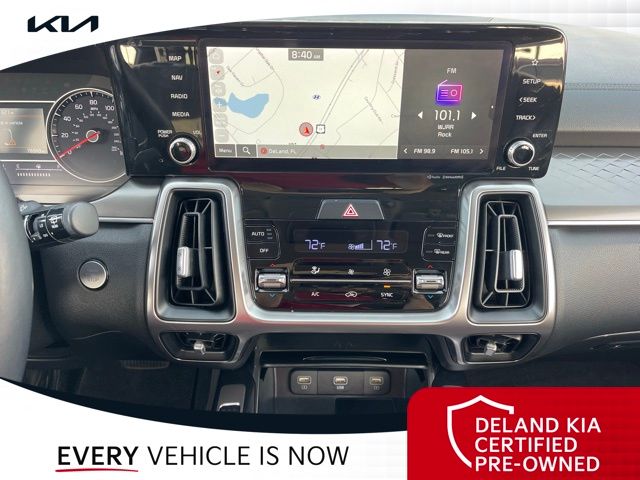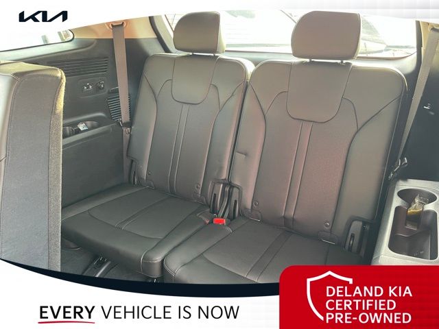 Equipped with Kia Certified Pre-Owned Certified, 3rd row seats: split-bench, Alloy wheels, Apple CarPlay & Android Auto, Front dual zone A/C, Heated front seats, Power driver seat, Rear air conditioning, Smart Key w/ Push Button and Remote Start, 3.798 Axle Ratio, 4-Wheel Disc Brakes, 6 Speakers, ABS brakes, Air Conditioning, AM/FM radio: SiriusXM, Auto High-beam Headlights, Automatic temperature control, Brake assist, Bumpers: body-color, Cargo Net, Carpeted Floor Mats, Delay-off headlights, Driver door bin, Driver vanity mirror, Dual front impact airbags, Dual front side impact airbags, Electronic Stability Control, Emergency communication system: UVO Link, Exterior Parking Camera Rear, Four wheel independent suspension, Front anti-roll bar, Front Bucket Seats, Front Center Armrest, Front reading lights, Fully automatic headlights, Heated door mirrors, Heated Front Bucket Seats, Illuminated entry, Knee airbag, Leather Shift Knob, Leather steering wheel, Low tire pressure warning, Navigation System, Occupant sensing airbag, Outside temperature display, Overhead airbag, Overhead console, Panic alarm, Passenger door bin, Passenger vanity mirror, Power door mirrors, Power steering, Power windows, Radio data system, Radio: AM/FM Audio System, Rear anti-roll bar, Rear reading lights, Rear seat center armrest, Rear window defroster, Rear window wiper, Remote keyless entry, Roof rack: rails only, Security system, Speed control, Speed-sensing steering, Split folding rear seat, Spoiler, Steering wheel mounted audio controls, SynTex Artificial Leather Seat Trim, Tachometer, Telescoping steering wheel, Tilt steering wheel, Traction control, Trip computer, Turn signal indicator mirrors, Variably intermittent wipers, and Wheels: 7.5J x 18" Machine-Finished Alloy.