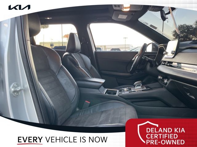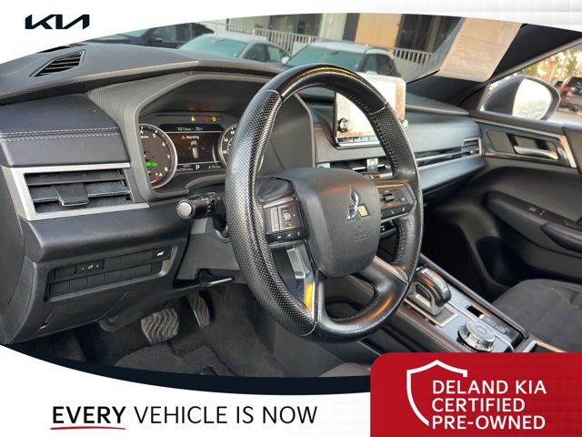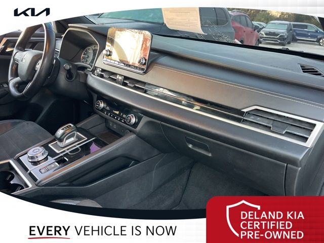 Equipped with Alloy wheels, Android Auto & Apple CarPlay, Front dual zone A/C, Front fog lights, Heated front seats, Power driver seat, Power Liftgate, Rain sensing wipers, Reclining 3rd row seat, 3rd row seats: split-bench, 4-Wheel Disc Brakes, ABS brakes, Air Conditioning, AM/FM radio: SiriusXM, Auto High-beam Headlights, Automatic temperature control, Axle Ratio: 5.694, Brake assist, Bumpers: body-color, Driver door bin, Driver vanity mirror, Dual front impact airbags, Dual front side impact airbags, Electronic Stability Control, Emergency communication system: Mitsubishi Connect w/ 24-month trial, Four wheel independent suspension, Front anti-roll bar, Front Bucket Seats, Front Center Armrest w/Storage, Front reading lights, Fully automatic headlights, Heated door mirrors, Heated Front Bucket Seats, Illuminated entry, Knee airbag, Leather Shift Knob, Leather steering wheel, Low tire pressure warning, Navigation system: Powered by TOMTOM, Occupant sensing airbag, Outside temperature display, Overhead airbag, Overhead console, Panic alarm, Passenger door bin, Passenger vanity mirror, Power door mirrors, Power steering, Power windows, Radio data system, Radio: AM/FM 9.0" Navigation w/Smartphone Link, Rear anti-roll bar, Rear seat center armrest, Rear side impact airbag, Rear window defroster, Rear window wiper, Remote keyless entry, Security system, Speed control, Speed-Sensitive Wipers, Split folding rear seat, Spoiler, Steering wheel mounted audio controls, Synthetic Leather Seat Trim, Tachometer, Telescoping steering wheel, Tilt steering wheel, Traction control, Trip computer, Turn signal indicator mirrors, Variably intermittent wipers, and Wheels: 20" x 8J Two-Tone Alloy.