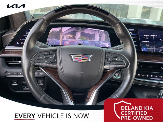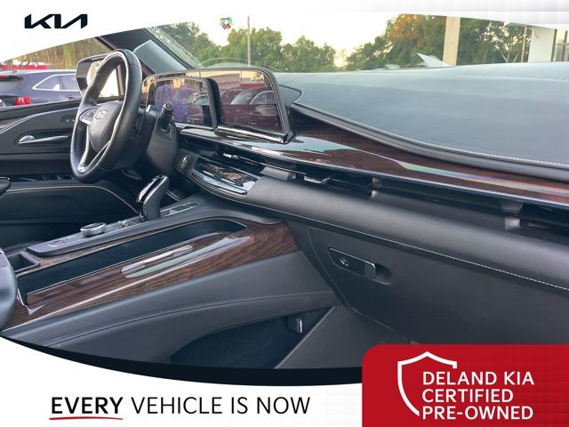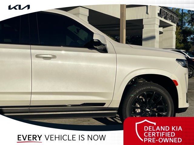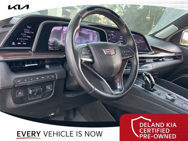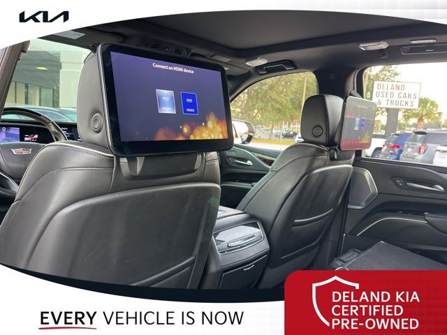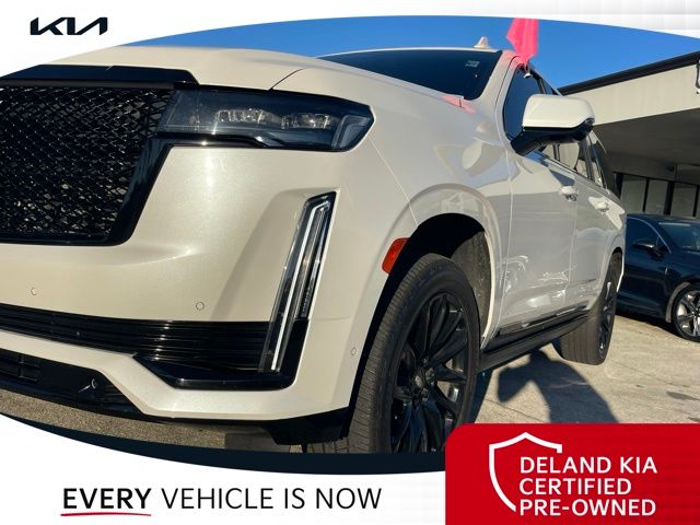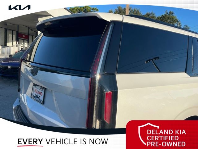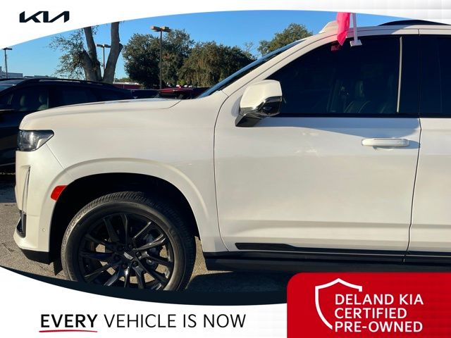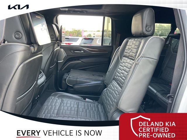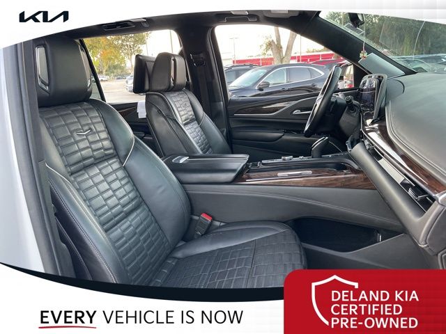 Equipped with All-Weather Floor Liner Package (LPO), Heavy-Duty Trailering Package (2-Speed Active Transfer Case, Extra Capacity Cooling System, Trailer Tire Pressure Monitoring System, Trailering Assist Guidelines, and Wired Auxiliary Trailer Camera (LPO)), Onyx Package (LPO) (Gloss Black Escalade Nameplate (LPO), Monochrome Cadillac Emblems (LPO), Wheels: 22" 12-Spoke Gloss Black Alloy (LPO), and Wheels: 22" Interim (LPO)), Preferred Equipment Group 1SH (Power Panoramic Tilt-Sliding Sunroof, Rear Seat Entertainment System, Adaptive Cruise Control, AKG Studio Reference 36-Speaker Audio System, Automatic Seat Belt Tightening, Body-Color Door Handles, Door Lock & Latch Shields, Electronic Limited-Slip Differential, Enhanced Automatic Emergency Braking, Enhanced Automatic Parking Assist, Floor Console w/Covered Storage, Front Auxiliary 12-volt Power Outlet, Glass Breakage Sensor, Heated & Ventilated Driver & Front Passenger Seats, Hitch Guidance w/Hitch View, Integrated Trailer Brake Controller, Platinum Interior Trim, Power Lumbar Massage Driver Seat, Power Lumbar Massage Front Passenger Seat, Rear Camera Mirror, Rear Camera Mirror Washer, Rear Cross Traffic Alert, Reconfigurable Full-Color Head-Up Display, Reverse Automatic Braking, Running Board Assist Steps, Smart Trailer Integration Indicator, Theft-Deterrent Alarm System, Trailer Side Blind Zone Alert, Vehicle Inclination Sensor, and Vehicle Interior Movement Sensor), Touring Package (Air Ride Adaptive Suspension, Illuminating Front & Rear Sill Plates, and Soft Closing Front & Rear Doors), AWD, Apple CarPlay/Android Auto, Front dual zone A/C, Heated rear seats, Heated steering wheel, Memory seat, Power Liftgate, Rain sensing wipers, Rear air conditioning, 16.9" Diagonal OLED Infotainment Screen, 2-Presets Memory For Driver Seat Adjuster, 3 Years of OnStar & Connected Services Plan, 3.23 Axle Ratio, 3rd row seats: split-bench, 4-Way Power Driver Lumbar Seat Adjuster, 4-Way Power Front Passenger Lumbar Seat Adjuster, 4-Wheel Disc Brakes, 8-Way Power Driver Seat Adjuster, 8-Way Power Front Passenger Seat Adjuster, A/V remote, ABS brakes, Adaptive suspension, Air Conditioning, Alloy wheels, AM/FM radio: SiriusXM with 360L, Audio memory, Auto High-beam Headlights, Auto tilt-away steering wheel, Auto-dimming door mirrors, Automatic temperature control, Brake assist, Bumpers: body-color, Compass, Delay-off headlights, Door auto-latch, Driver door bin, Driver vanity mirror, Dual front impact airbags, Dual front side impact airbags, Electronic Stability Control, Emergency communication system: OnStar and Cadillac connected services capable, Exterior Parking Camera Rear, Four wheel independent suspension, Front anti-roll bar, Front Bucket Seats, Front Center Armrest w/Storage, Front reading lights, Full Semi-Aniline Leather Seat Trim, Fully automatic headlights, Garage door transmitter, Genuine wood console insert, Genuine wood dashboard insert, Genuine wood door panel insert, HD Radio, Headphones, Heads-Up Display, Heated door mirrors, Heated Driver & Front Passenger Seats, Heated front seats, Illuminated entry, Leather steering wheel, Low tire pressure warning, Magnetic Ride Control Suspension, Navigation System, Night Vision, Not Equipped w/2nd Row Express-Up Window Control, Occupant sensing airbag, Outside temperature display, Passenger door bin, Passenger vanity mirror, Power door mirrors, Power driver seat, Power moonroof,