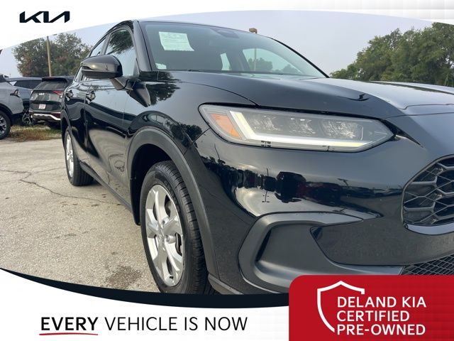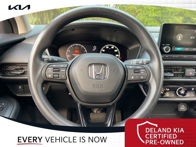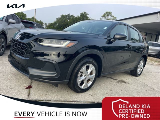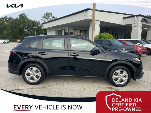 Recent Arrival! CARFAX One-Owner. Crystal Black Pearl 2023 Honda HR-V LX0 MONEY DOWN AVAILABLE***, LIFETIME OIL CHANGES, CARFAX ACCIDENT FREE, Florida Driven, Backup Camera, Alloy wheels, Apple CarPlay/Android Auto, Auto High-beam Headlights, Automatic temperature control, Remote keyless entry, Steering wheel mounted audio controls.Black Cloth interior.26/32 City/Highway MPGDeland Kia, We're Closer Than You Think!!!! Se habla Espanol!!Equipped with Alloy wheels, Apple CarPlay/Android Auto, Auto High-beam Headlights, Automatic temperature control, Remote keyless entry, Steering wheel mounted audio controls, 4 Speakers, 4-Wheel Disc Brakes, 5.436 Axle Ratio, ABS brakes, Adaptive Cruise Control: Adaptive Cruise Control (ACC) with Low-Speed Follow, Air Conditioning, AM/FM radio, Brake assist, Bumpers: body-color, Cloth Seat Trim, Delay-off headlights, Driver door bin, Driver vanity mirror, Dual front impact airbags, Dual front side impact airbags, Electronic Stability Control, Emergency communication system: HondaLink, Exterior Parking Camera Rear, Four wheel independent suspension, Front anti-roll bar, Front Bucket Seats, Front Center Armrest, Front reading lights, Fully automatic headlights, Illuminated entry, Knee airbag, Low tire pressure warning, Occupant sensing airbag, Outside temperature display, Overhead airbag, Panic alarm, Passenger door bin, Passenger vanity mirror, Power door mirrors, Power steering, Power windows, Radio data system, Radio: 180-Watt Audio System w/4 Speakers, Rear anti-roll bar, Rear reading lights, Rear side impact airbag, Rear window defroster, Rear window wiper, Security system, Speed control, Speed-sensing steering, Split folding rear seat, Spoiler, Tachometer, Telescoping steering wheel, Tilt steering wheel, Traction control, Trip computer, Variably intermittent wipers, and Wheels: 17" Silver Painted Alloy.
