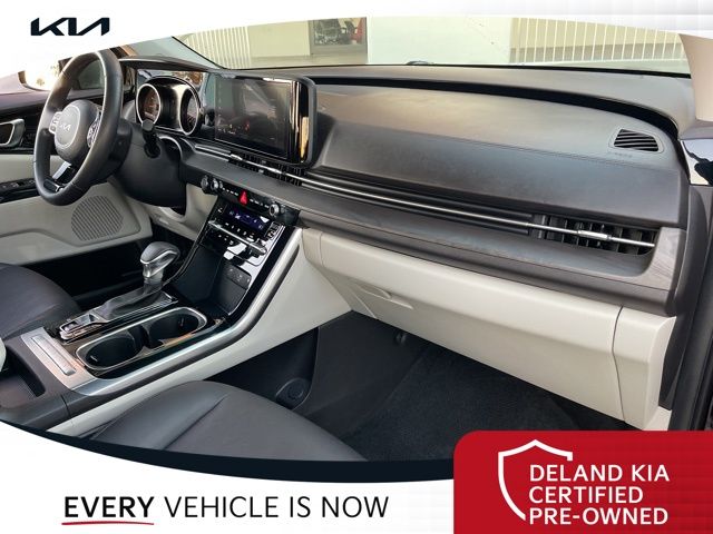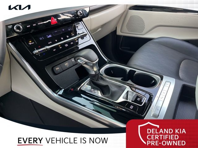 Equipped with Alloy wheels, Apple CarPlay & Android Auto, Front dual zone A/C, Heated front seats, Power driver seat, Power Liftgate, Rear air conditioning, Reclining 3rd row seat, 3.51 Axle Ratio, 3rd row seats: split-bench, 4-Wheel Disc Brakes, 8 Speakers, ABS brakes, Air Conditioning, AM/FM radio: SiriusXM, Artificial Leather Seat Trim, Auto High-beam Headlights, Automatic temperature control, Brake assist, Bumpers: body-color, Carpeted Floor Mats (8-Passenger), Compass, Delay-off headlights, Driver door bin, Driver vanity mirror, Dual front impact airbags, Dual front side impact airbags, Electronic Stability Control, Emergency communication system, Four wheel independent suspension, Front anti-roll bar, Front Bucket Seats, Front Center Armrest, Front reading lights, Fully automatic headlights, Heated door mirrors, Heated Front Bucket Seats, Illuminated entry, Knee airbag, Leather Shift Knob, Leather steering wheel, Low tire pressure warning, Navigation System, Occupant sensing airbag, Outside temperature display, Overhead airbag, Overhead console, Panic alarm, Passenger door bin, Passenger vanity mirror, Power door mirrors, Power steering, Power windows, Radio: AM/FM/HD Audio System, Rear anti-roll bar, Rear reading lights, Rear window defroster, Rear window wiper, Remote keyless entry, Security system, Speed control, Speed-sensing steering, Split folding rear seat, Spoiler, Steering wheel mounted audio controls, Tachometer, Telescoping steering wheel, Tilt steering wheel, Traction control, Trip computer, Turn signal indicator mirrors, Variably intermittent wipers, and Wheels: 7.5J x 19" Machine-Finished Alloy.