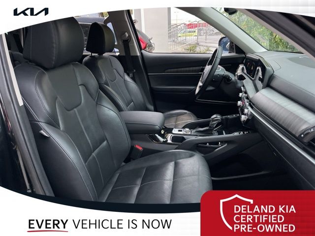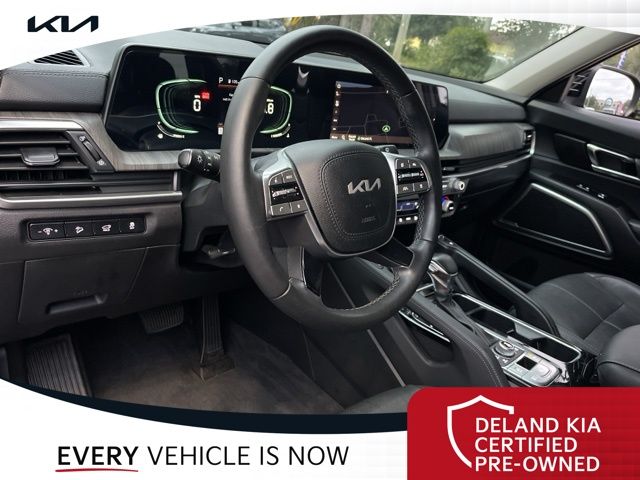 Equipped with Alloy wheels, Apple CarPlay & Android Auto, Front dual zone A/C, Heated steering wheel, Power driver seat, Power Liftgate, Power passenger seat, Rear air conditioning, Reclining 3rd row seat, Smart Key w/ Push Button and Remote Start, 3.648 Axle Ratio, 3rd row seats: split-bench, 4-Wheel Disc Brakes, 6 Speakers, ABS brakes, Air Conditioning, AM/FM radio: SiriusXM, Auto High-beam Headlights, Auto-dimming Rear-View mirror, Automatic temperature control, Brake assist, Bumpers: body-color, Carpet Floor Mats, Compass, Delay-off headlights, Driver door bin, Driver vanity mirror, Dual front impact airbags, Dual front side impact airbags, Electronic Stability Control, Emergency communication system: 911 Connect, Exterior Parking Camera Rear, Four wheel independent suspension, Front anti-roll bar, Front Bucket Seats, Front Center Armrest, Front reading lights, Fully automatic headlights, Heated & Ventilated Front Bucket Seats, Heated door mirrors, Heated front seats, Hybrid Cargo Net, Illuminated entry, Knee airbag, Leather Seat Trim, Leather Shift Knob, Leather steering wheel, Low tire pressure warning, Navigation System, Occupant sensing airbag, Outside temperature display, Overhead airbag, Overhead console, Panic alarm, Passenger door bin, Passenger vanity mirror, Power door mirrors, Power moonroof, Power steering, Power windows, Radio data system, Radio: AM/FM Display Audio System, Rear anti-roll bar, Rear audio controls, Rear reading lights, Rear seat center armrest, Rear side impact airbag, Rear window defroster, Rear window wiper, Remote keyless entry, Roof rack: rails only, Security system, Speed control, Speed-sensing steering, Split folding rear seat, Spoiler, Steering wheel mounted audio controls, Tachometer, Telescoping steering wheel, Tilt steering wheel, Traction control, Trip computer, Turn signal indicator mirrors, Variably intermittent wipers, Ventilated front seats, and Wheels: 20" x 7.5" Black Finish.