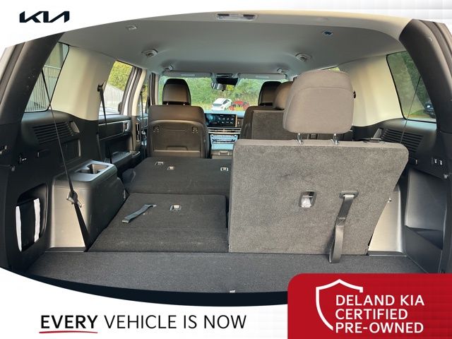 Equipped with Option Group 01, Black Cloth, 3rd row seats: bench, Alloy wheels, Apple CarPlay & Android Auto, Power Liftgate, 18" x 7.5J Alloy Wheels, 4-Wheel Disc Brakes, 6 Speakers, ABS brakes, Air Conditioning, AM/FM radio: SiriusXM, Auto High-beam Headlights, Axle Ratio: 3.316, Brake assist, Bumpers: body-color, Cargo Cover/Screen, Carpeted Floor Mats, Delay-off headlights, Driver door bin, Driver vanity mirror, Dual front impact airbags, Dual front side impact airbags, Electronic Stability Control, Emergency communication system, Exterior Parking Camera Rear, First Aid Kit, Four wheel independent suspension, Front anti-roll bar, Front Bucket Seats, Front Center Armrest, Front reading lights, Fully automatic headlights, Heated door mirrors, Illuminated entry, Knee airbag, Leather steering wheel, Low tire pressure warning, Occupant sensing airbag, Outside temperature display, Overhead airbag, Overhead console, Panic alarm, Passenger door bin, Passenger vanity mirror, Power door mirrors, Power steering, Power windows, Radio: AM/FM/HD Display Audio, Rear anti-roll bar, Rear seat center armrest, Rear side impact airbag, Rear window defroster, Rear window wiper, Remote keyless entry, Security system, Speed control, Speed-sensing steering, Split folding rear seat, Spoiler, Steering wheel mounted audio controls, Tachometer, Telescoping steering wheel, Tilt steering wheel, Traction control, Trip computer, Variably intermittent wipers, Wheel Locks, and YES Essentials Stain-Resistant Cloth Seat Trim.