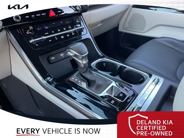 Equipped with Alloy wheels, Apple CarPlay & Android Auto, Auto-dimming Rear-View mirror, Front dual zone A/C, Heated steering wheel, Memory seat, Power 2nd-Row Moonroof, Power Liftgate, Power moonroof, Power passenger seat, Rear air conditioning, Reclining 3rd row seat, 12 Speakers, 3.51 Axle Ratio, 3rd row seats: split-bench, 4-Wheel Disc Brakes, ABS brakes, Air Conditioning, AM/FM radio: SiriusXM, Auto High-beam Headlights, Automatic temperature control, Brake assist, Bumpers: body-color, Carpeted Floor Mats (8-Passenger), Compass, Delay-off headlights, Driver door bin, Driver vanity mirror, Dual front impact airbags, Dual front side impact airbags, Electronic Stability Control, Emergency communication system, Exterior Parking Camera Rear, Four wheel independent suspension, Front anti-roll bar, Front Bucket Seats, Front Center Armrest, Front fog lights, Front reading lights, Fully automatic headlights, Garage door transmitter: HomeLink, Heated & Ventilated Front Bucket Seats, Heated door mirrors, Heated front seats, Illuminated entry, Knee airbag, Leather Shift Knob, Leather steering wheel, Low tire pressure warning, Navigation System, Occupant sensing airbag, Outside temperature display, Overhead airbag, Overhead console, Panic alarm, Passenger door bin, Passenger vanity mirror, Power door mirrors, Power driver seat, Power steering, Power windows, Pure Leather Seat Trim, Radio: AM/FM/HD Audio System, Rear anti-roll bar, Rear reading lights, Rear window defroster, Rear window wiper, Remote keyless entry, Roof rack: rails only, Security system, Speed control, Speed-sensing steering, Split folding rear seat, Spoiler, Steering wheel mounted audio controls, Tachometer, Telescoping steering wheel, Tilt steering wheel, Traction control, Trip computer, Turn signal indicator mirrors, Variably intermittent wipers, Ventilated front seats, and Wheels: 7.5J x 19" Black Painted Alloy.