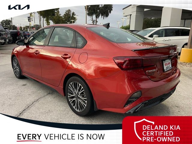 Recent Arrival! CARFAX One-Owner. Fire Orange 2024 Kia Forte GT-Line0 MONEY DOWN AVAILABLE***, LIFETIME OIL CHANGES, CARFAX ACCIDENT FREE, NAVIGATION, Florida Driven, Backup Camera, Blind-Spot Monitors, Keyless Access w/Push Button Start, Alloy wheels, Apple CarPlay & Android Auto, Front dual zone A/C, Front fog lights, harman/kardon® Premium Audio, Power Sunroof.Black Cloth/Leather interior.28/39 City/Highway MPGDeland Kia, We're Closer Than You Think!!!! Se habla Espanol!!Equipped with GT-Line Premium Package (harman/kardon® Premium Audio, Power Sunroof, LED Interior Lighting, and Wireless Charging), Alloy wheels, Apple CarPlay & Android Auto, Front dual zone A/C, Front fog lights, 4-Wheel Disc Brakes, 6 Speakers, ABS brakes, Air Conditioning, AM/FM radio: SiriusXM, Auto High-beam Headlights, Automatic temperature control, Brake assist, Bumpers: body-color, Carpet Floor Mats, Cloth & SynTex Seat Trim, Delay-off headlights, Driver door bin, Driver vanity mirror, Dual front impact airbags, Dual front side impact airbags, Electronic Stability Control, Emergency communication system, Exterior Parking Camera Rear, Front anti-roll bar, Front Bucket Seats, Front Center Armrest, Front reading lights, Front wheel independent suspension, Fully automatic headlights, Heated door mirrors, Illuminated entry, Leather Shift Knob, Leather steering wheel, Low tire pressure warning, Navigation System, Occupant sensing airbag, Outside temperature display, Overhead airbag, Overhead console, Panic alarm, Passenger door bin, Passenger vanity mirror, Power door mirrors, Power steering, Power windows, Radio data system, Radio: 10.25" Display Audio, Rear seat center armrest, Rear window defroster, Remote keyless entry, Security system, Speed control, Split folding rear seat, Spoiler, Sport steering wheel, Steering wheel mounted audio controls, Tachometer, Telescoping steering wheel, Tilt steering wheel, Traction control, Trip computer, Turn signal indicator mirrors, Variably intermittent wipers, and Wheels: 17" x 7.0 Alloy.