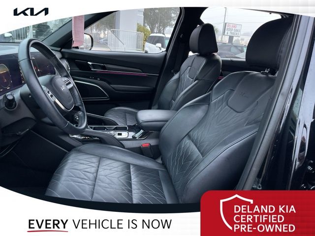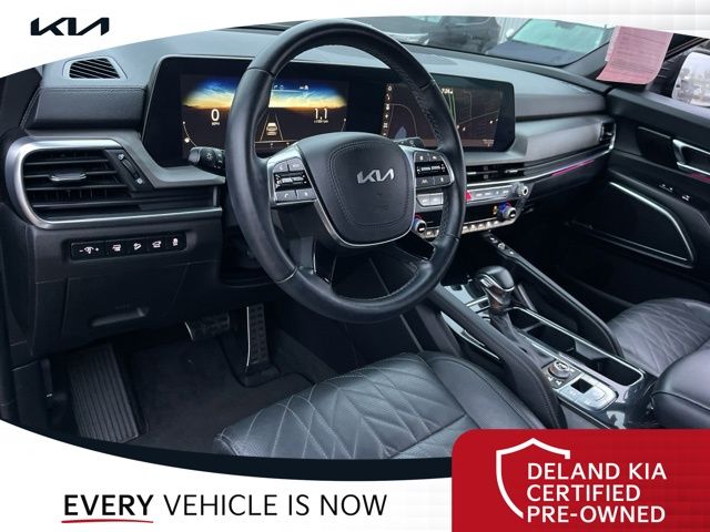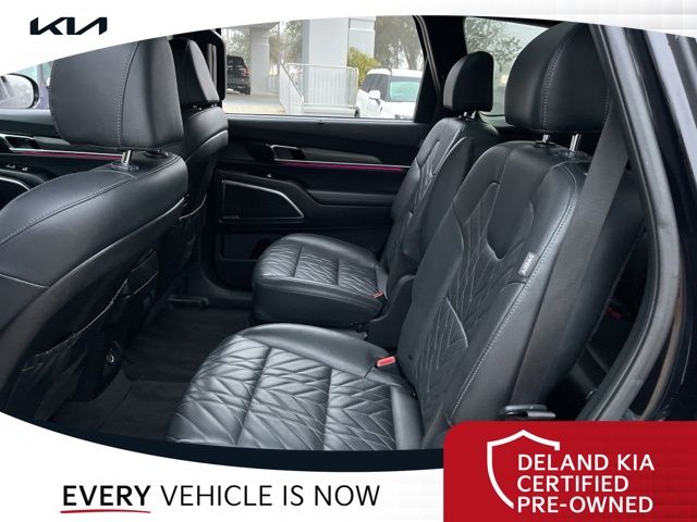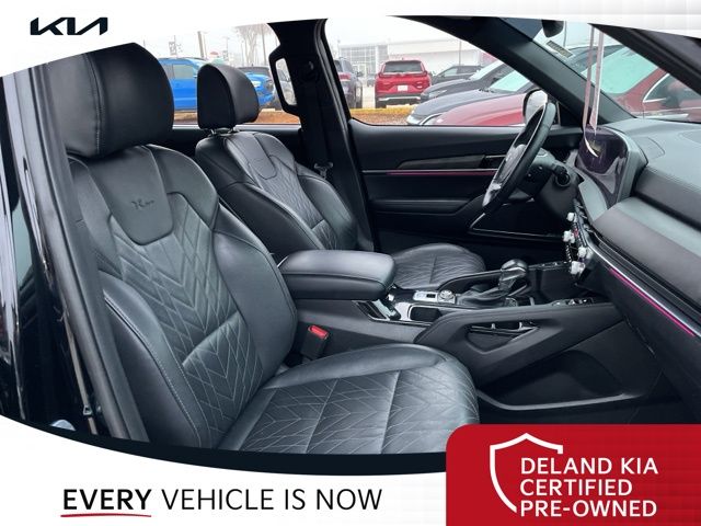 Step inside the Telluride SX X-Pro and be captivated by its luxurious Ebony Black interior, featuring premium CARPET FLOOR MATS and a host of advanced features. Enjoy the comfort of heated and ventilated front bucket seats, a power passenger seat, and a reclining third-row seat, perfect for accommodating your entire family.