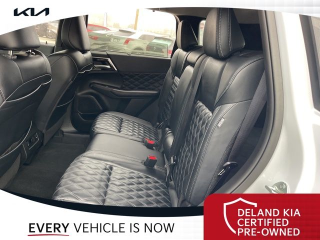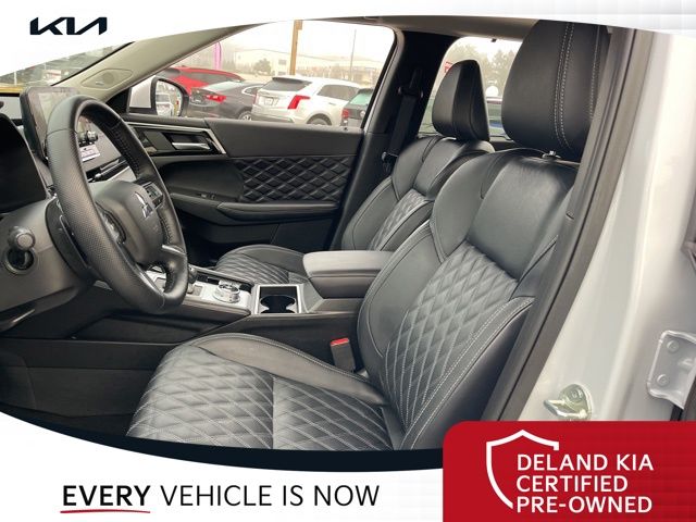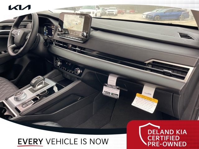 Equipped with Alloy wheels, Android Auto & Apple CarPlay, Front dual zone A/C, Heated front seats, Heated rear seats, Memory seat, Navigation System, Power Liftgate, Power passenger seat, Rain sensing wipers, Rear air conditioning, Reclining 3rd row seat, 3rd row seats: split-bench, 4-Wheel Disc Brakes, 5.694 Axle Ratio, 6 Speakers, ABS brakes, Active Cruise Control, Air Conditioning, AM/FM radio: SiriusXM, Auto High-beam Headlights, Auto-dimming Rear-View mirror, Automatic temperature control, Brake assist, Bumpers: body-color, Driver door bin, Driver vanity mirror, Dual front impact airbags, Dual front side impact airbags, Electronic Stability Control, Emergency communication system: Mitsubishi Connect w/ 24-month trial, Exterior Parking Camera Rear, Four wheel independent suspension, Front anti-roll bar, Front Bucket Seats, Front Center Armrest w/Storage, Front fog lights, Front reading lights, Fully automatic headlights, Heated door mirrors, Heated Front Bucket Seats, Illuminated entry, Knee airbag, Leather Seat Trim, Leather Shift Knob, Leather steering wheel, Low tire pressure warning, Occupant sensing airbag, Outside temperature display, Overhead airbag, Overhead console, Panic alarm, Passenger door bin, Passenger vanity mirror, Power door mirrors, Power driver seat, Power steering, Power windows, Radio data system, Radio: AM/FM 9.0" Navigation w/Smartphone Link, Rear anti-roll bar, Rear seat center armrest, Rear side impact airbag, Rear window defroster, Rear window wiper, Remote keyless entry, Security system, Speed control, Speed-Sensitive Wipers, Split folding rear seat, Spoiler, Steering wheel mounted audio controls, Tachometer, Telescoping steering wheel, Tilt steering wheel, Traction control, Trip computer, Turn signal indicator mirrors, Variably intermittent wipers, and Wheels: 20" Two-Tone Alloy.