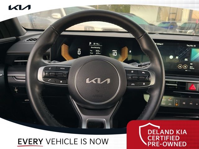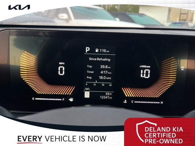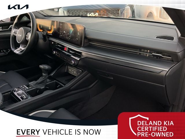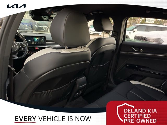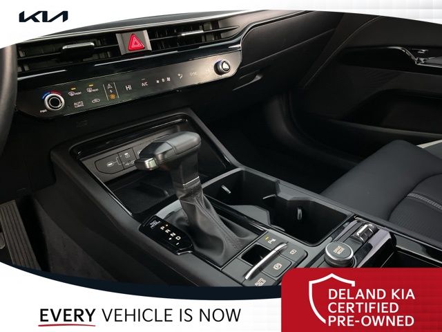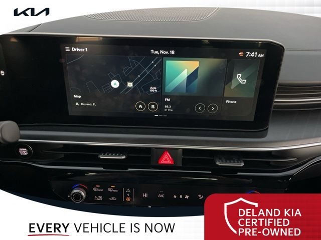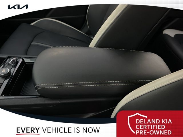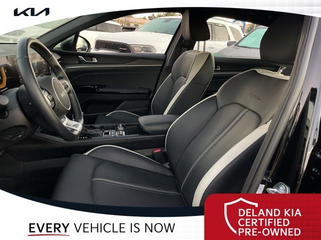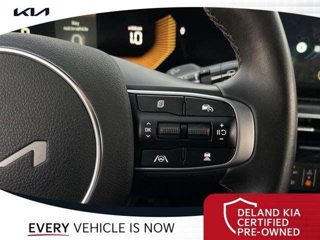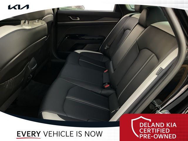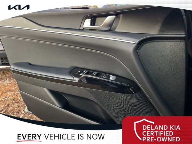 Equipped with Alloy wheels, Front dual zone A/C, Front fog lights, Heated front seats, Heated steering wheel, Power driver seat, 4-Wheel Disc Brakes, 6 Speakers, ABS brakes, Air Conditioning, AM/FM radio: SiriusXM, Auto High-beam Headlights, Automatic temperature control, Brake assist, Bumpers: body-color, Cargo Net, Carpeted Floor Mats, Delay-off headlights, Driver door bin, Driver vanity mirror, Dual front impact airbags, Dual front side impact airbags, EC Mirror w/Homelink, Electronic Stability Control, Emergency communication system: Kia Connect (includes 1 year free trial), Four wheel independent suspension, Front anti-roll bar, Front Bucket Seats, Front Center Armrest, Front reading lights, Fully automatic headlights, Heated door mirrors, Heated Front Bucket Seats, Illuminated entry, Knee airbag, Leather Shift Knob, Leather steering wheel, Low tire pressure warning, Navigation System, Occupant sensing airbag, Outside temperature display, Overhead airbag, Overhead console, Panic alarm, Passenger door bin, Passenger vanity mirror, Power door mirrors, Power steering, Power windows, Radio data system, Radio: AM/FM Audio System, Rear anti-roll bar, Rear seat center armrest, Rear side impact airbag, Rear window defroster, Remote keyless entry, Security system, Speed control, Speed-sensing steering, Split folding rear seat, Sport steering wheel, Steering wheel mounted audio controls, Tachometer, Telescoping steering wheel, Tilt steering wheel, Traction control, Trip computer, Turn signal indicator mirrors, Variably intermittent wipers, and Wheels: 18" x 7.5J Gloss Black Machined Finish Alloy.